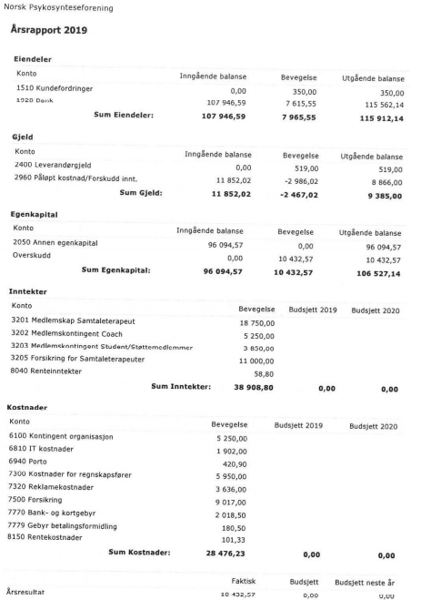 Resultat- og balanseoppstilling Norsk Psykosynteseforening år 2015